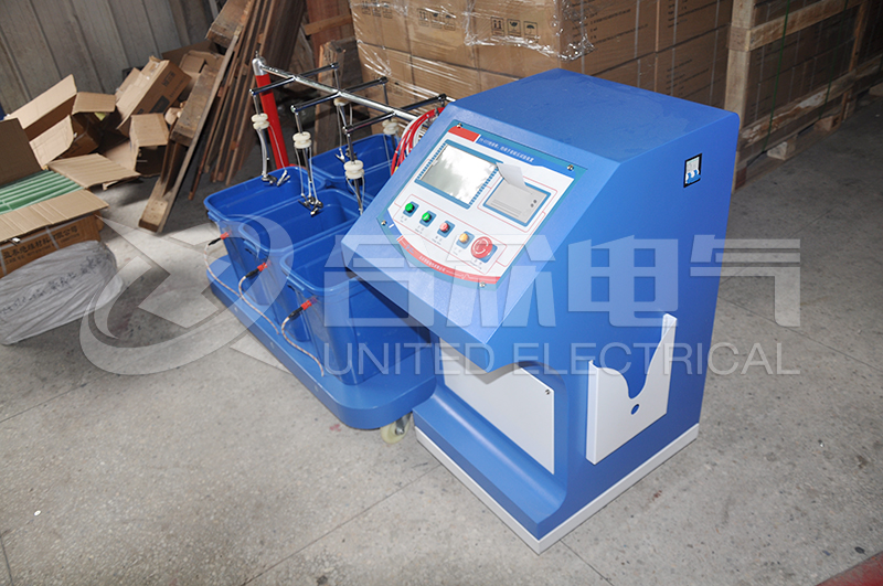 上圖是今天準備發走的全自動絕緣靴(手套)耐壓試驗裝置,是不是很漂亮、科技感十足,這款設備優化了傳統耐壓試驗裝置的性能,使其能有效地解決了以往不規則的測試方法,簡化了測試程序,提高了檢測速度,減輕了檢測強度,保障了檢測人員的安全,可靠地鑒別絕緣手套(靴)的泄漏電流,絕緣老化和工頻耐壓等參數,可同時檢測六只絕緣手套(靴)。該裝置集高壓電源與控制系統一體化,接線和操作簡單,布局合理可靠,移動方便,拆裝靈活等特點,是理想的換代產品。