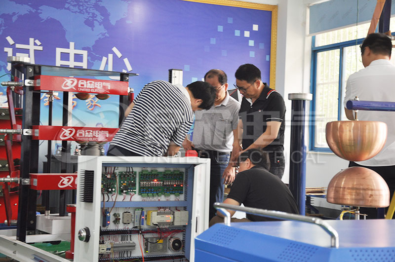 2018年6月5日,來自寶島臺灣的某電機公司客戶到訪武漢市合眾電氣,考察驗收沖擊電壓發生器、變壓器測試系統等設備。在各部門負責人及技術人員的陪同下,臺灣客戶參觀考察了公司生產車間,產品研發測試中心,對我司沖擊電壓發生器進行了現場測試驗收。對客戶提出的各類問題,公司領導和相關技術人員均作出了專業細致的解答。