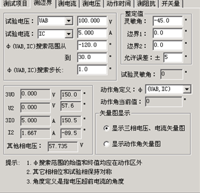 微機(jī)繼電保護(hù)測(cè)試儀的測(cè)邊界作者:合眾電氣發(fā)布時(shí)間:2021-08-16瀏覽量:3812 次字體顯示:【大】【中】【小】 微機(jī)繼電保護(hù)測(cè)試儀的測(cè)邊界。 測(cè)邊界 自動(dòng)測(cè)試出方向性保護(hù)的兩個(gè)動(dòng)作邊界,并且自動(dòng)計(jì)算出最大靈敏角。在“顯示動(dòng)作角矢量圖”的顯示方式下,從主界面右側(cè)的圖中可以很直觀地觀察到兩條邊界線和最大靈敏線。上一篇: 微機(jī)繼電保護(hù)測(cè)試儀試驗(yàn)參量下一篇: 微機(jī)繼電保護(hù)測(cè)試儀測(cè)試項(xiàng)目的界面說(shuō)明