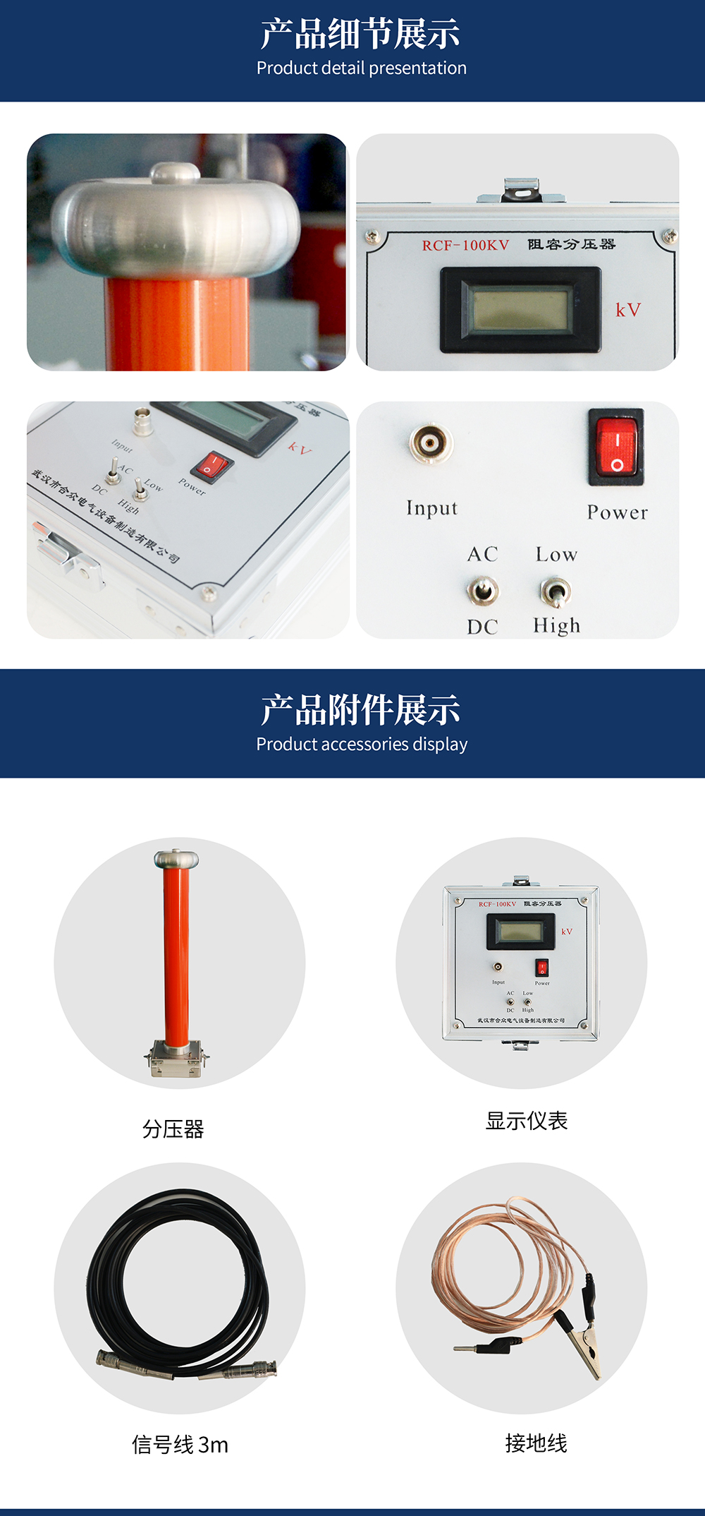本產品作為高電壓測量之理想設備,主要用于電力系統及電氣電子設備制造部門測量工頻交流高電壓和直流高電壓。本儀器由高壓分壓器和低壓顯示表兩部分組成,兩者采用配套電纜連接使用。